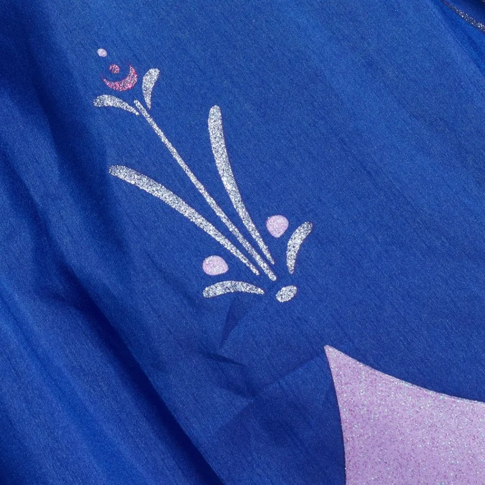 Les petits sujets d’Arendelle seront parés pour un formidable voyage vers l’inconnu ! Ce déguisement Anna est composé d’une jupe bleue brillante et d’un corsage noir à sequins et filigrane en rosemaling, sans oublier la cape en satin avec bord molletonné.