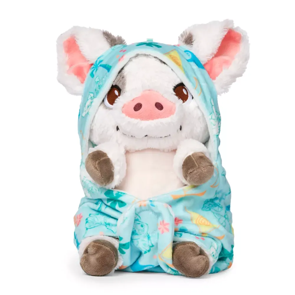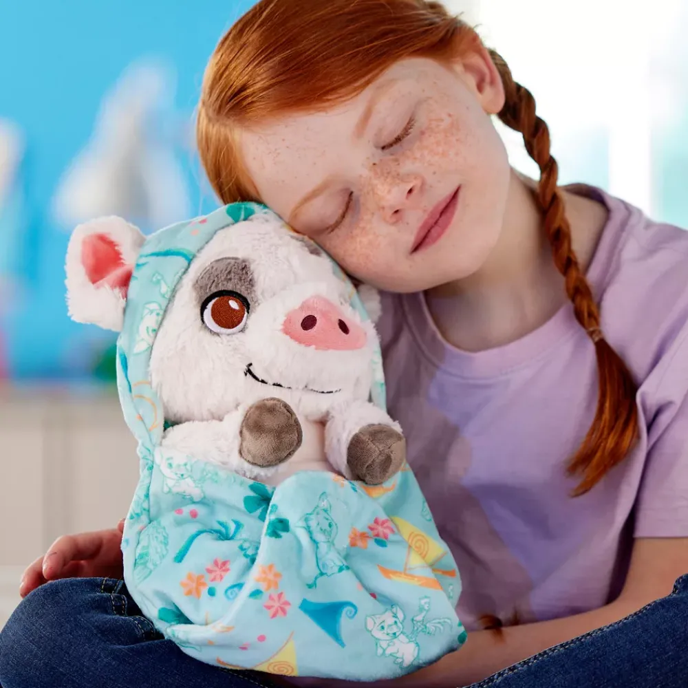 Cela va de soi, Pua est le cochon le plus mignon de l’océan Pacifique ! Cette petite peluche à l’effigie de l’adorable compagnon de Vaiana est emmitouflée dans un lange.