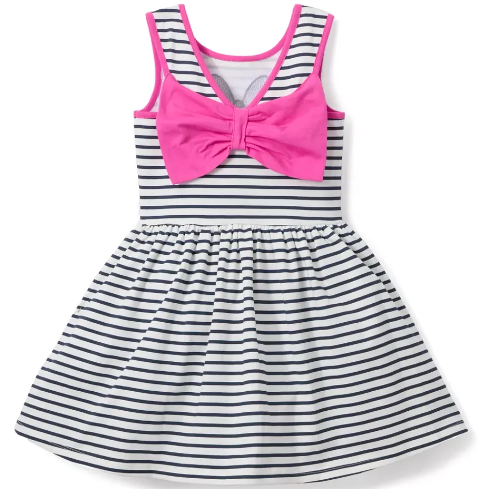 Oh là là ! Cette robe est aussi adorable que Minnie elle-même ! Avec ses rayures colorées, son charmant appliqué à l’effigie de la jolie souris et son noeud surdimensionné, elle est parfaite pour inciter les enfants à expérimenter avec la mode.