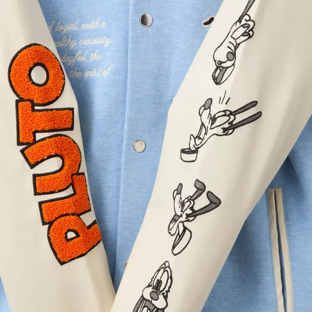 Célébrez le charme classique de Disney même à l’âge adulte avec ce blouson style universitaire inspiré de Pluto. Ce remarquable modèle présente un croquis original de Pluto sur une manche et une grande inscription « PLUTO » sur l’autre, pour apporter personnalité et nostalgie à une silhouette intemporelle. En plus de ses manches contrastantes, ce blouson comporte des garnitures côtelées sur le col, les poignets et l’ourlet. Vous aurez vraiment l’impression de faire partie d’une équipe universitaire ! Que vous le superposiez à quelque chose de plus décontracté ou que vous en fassiez la star de votre tenue, ce blouson est un hommage à la fantaisie et à l’animation Disney.