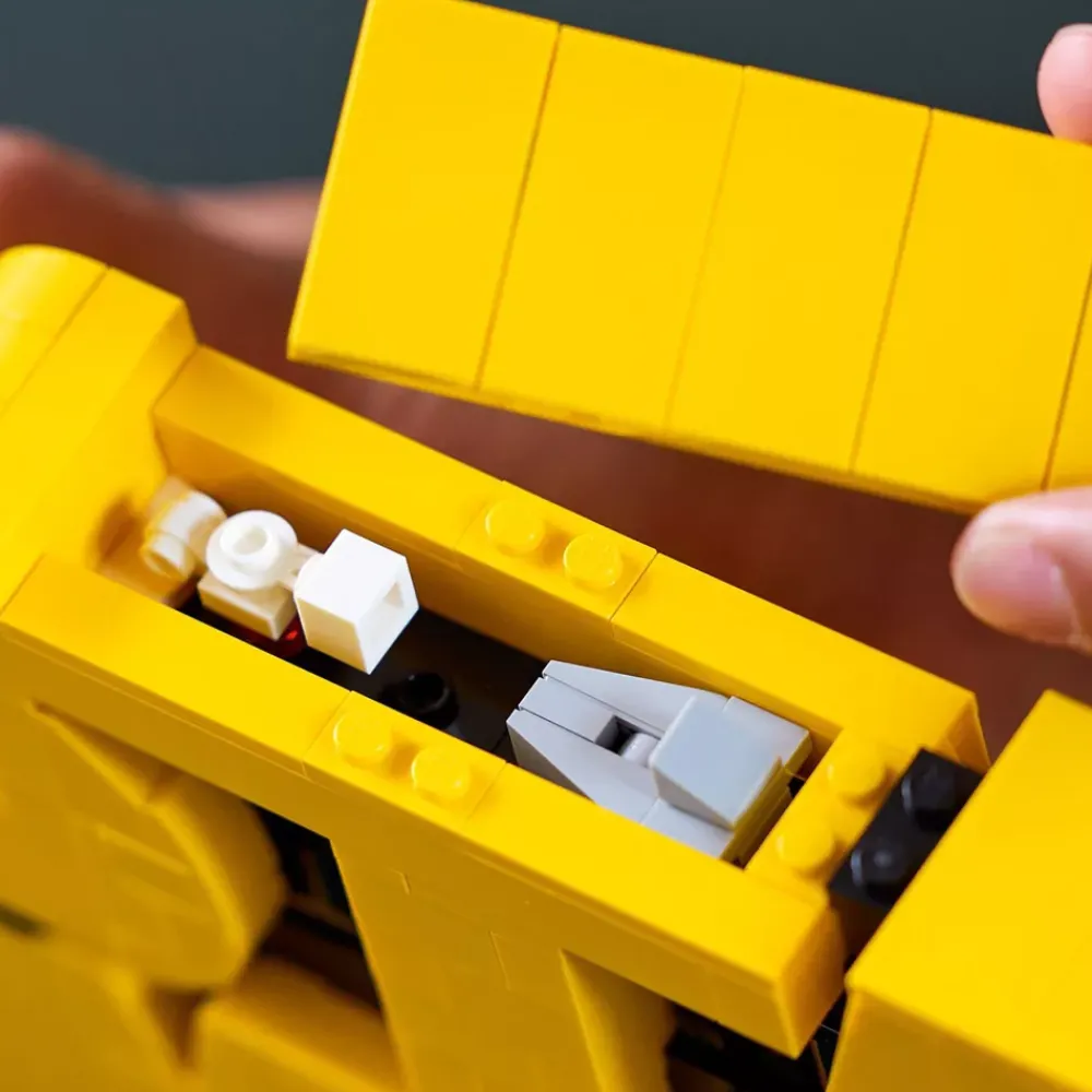 - Des détails minutieux – Ce logo Star Wars est rehaussé de « greeblings » LEGO dans les espaces noirs entre les lettres jaunes, et une petite surprise se cache dans le « T » de Star Wars