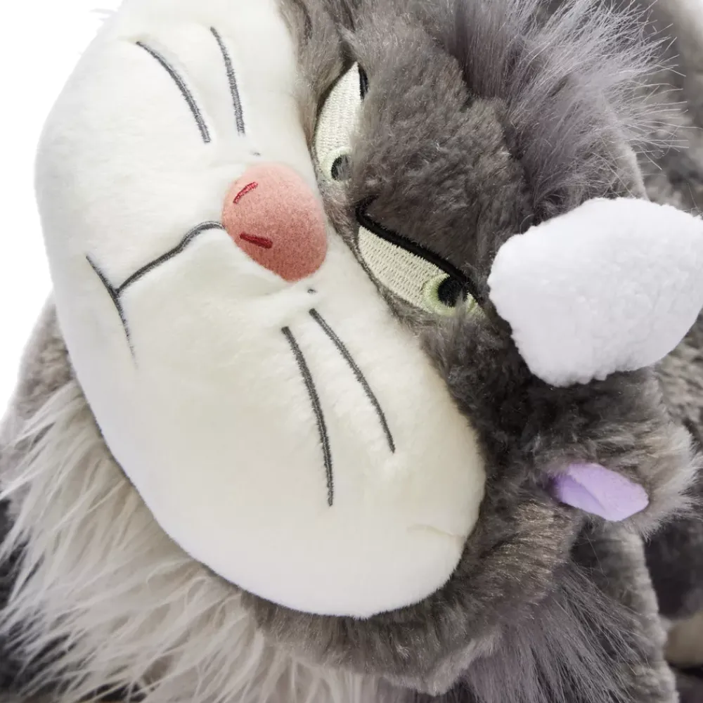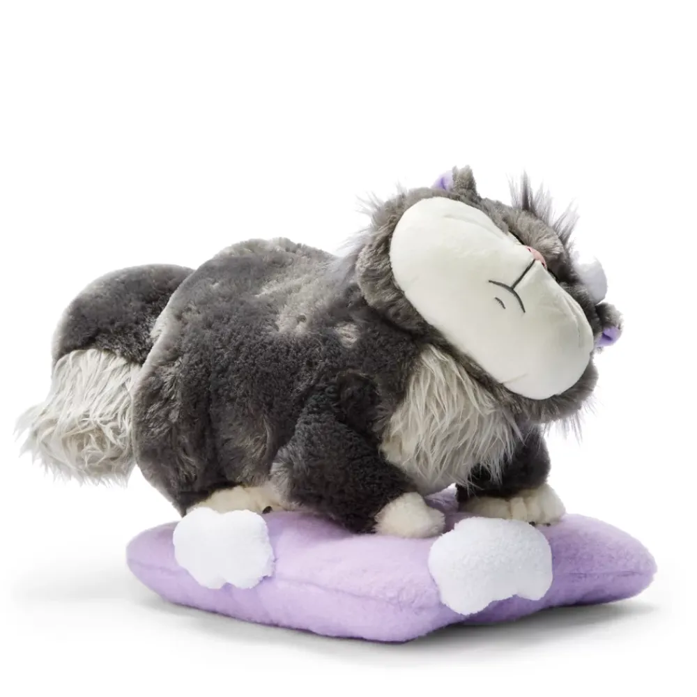 Notre peluche Lucifer rembourrée et paresseuse est prête pour une longue sieste sur son coussin matelassé avant sa prochaine bêtise dans le château. Le chat rusé de Lady Tremaine, tiré de Cendrillon de Walt Disney, est encore plus ronchon que d’habitude, couvert de petites taches de crème. Il aura besoin de beaucoup de tendresse pour l’empêcher de s’approcher de vos souris et oiseaux couturiers.