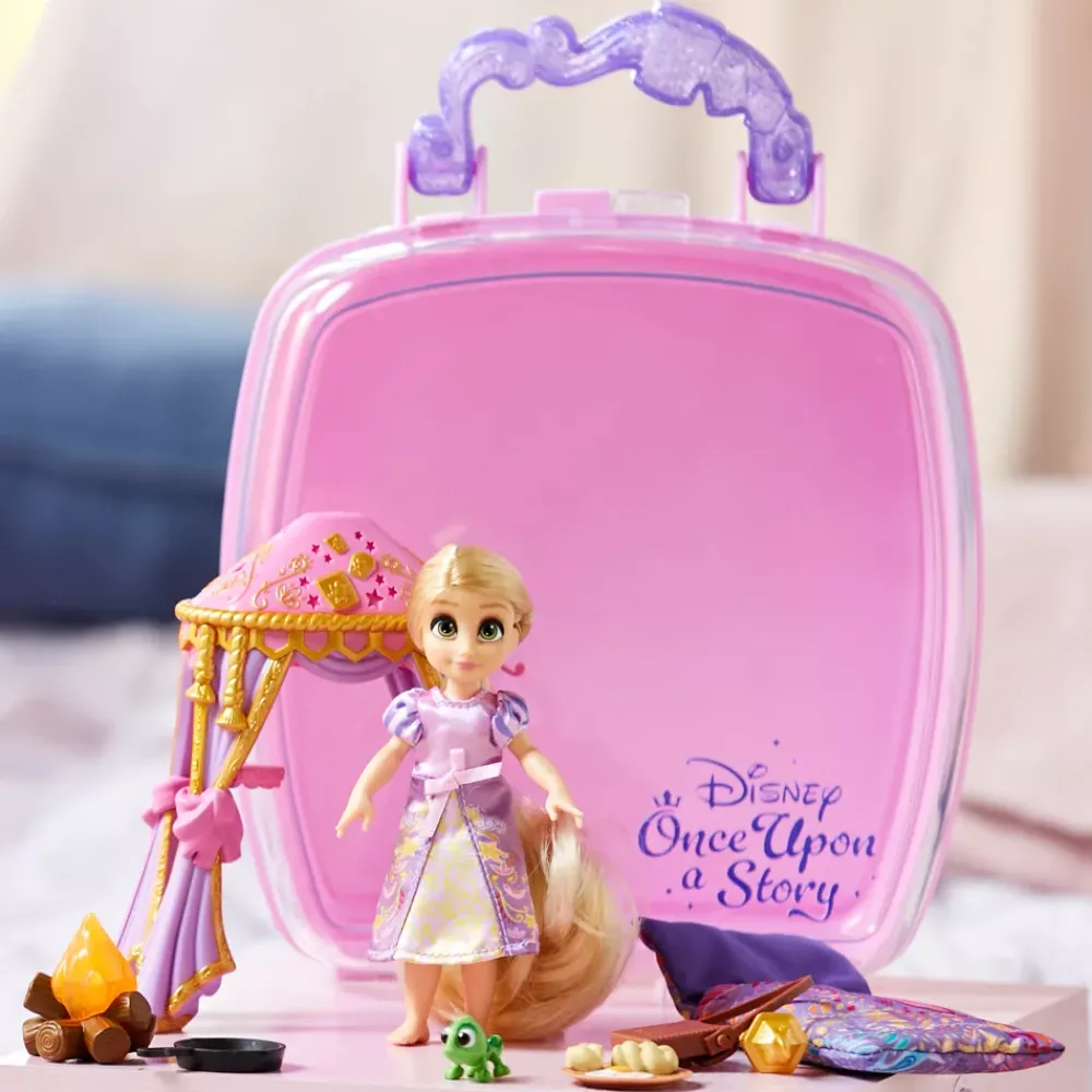 La collection Once Upon a Story rend hommage au pouvoir de l’imagination et de la créativité à travers les personnages emblématiques de Disney. Des centaines d’histoires féériques n’attendent qu’à être créées ! Cette poupée articulée de 12,5 centimètres environ représente Raiponce enfant, alors qu’elle rêvait déjà des aventures qu’elle vivrait en sortant de sa tour. Elle est fournie dans une mallette avec fenêtre transparente, poignée pailletée et fermeture à bouton-pression, et est accompagnée d’une multitude d’accessoires, d’une figurine Pascal, d’une tente et d’un sac de couchage.