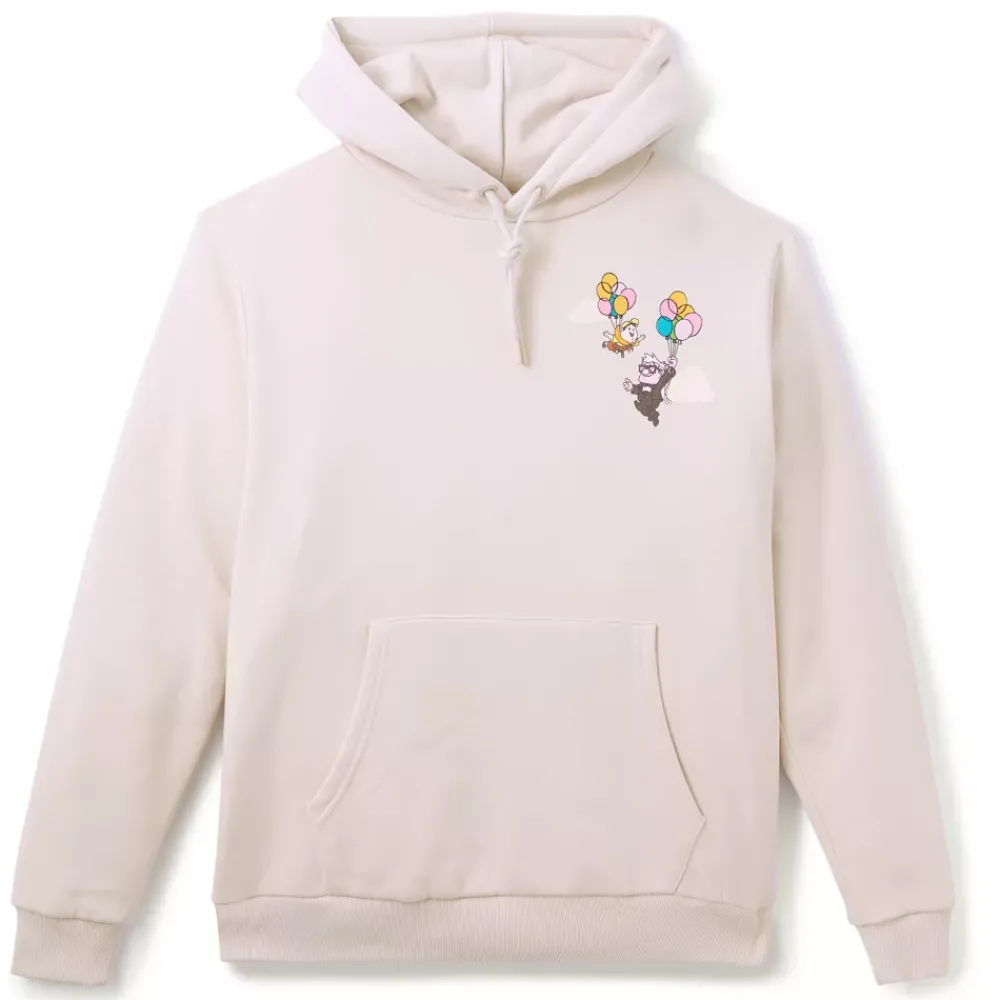 Préparez-vous à vivre de grandes aventures sans pour autant compromettre votre style avec ce haut à capuche Là-Haut ! Carl et Russell sont déjà en route, flottant dans le ciel suspendus à leurs fidèles ballons sur le devant du haut. Dans le dos, la maison emblématique du film s’élève au-dessus d’une inscription colorée. Idéal pour les fans qui mettent du coeur dans toutes leurs aventures du quotidien !