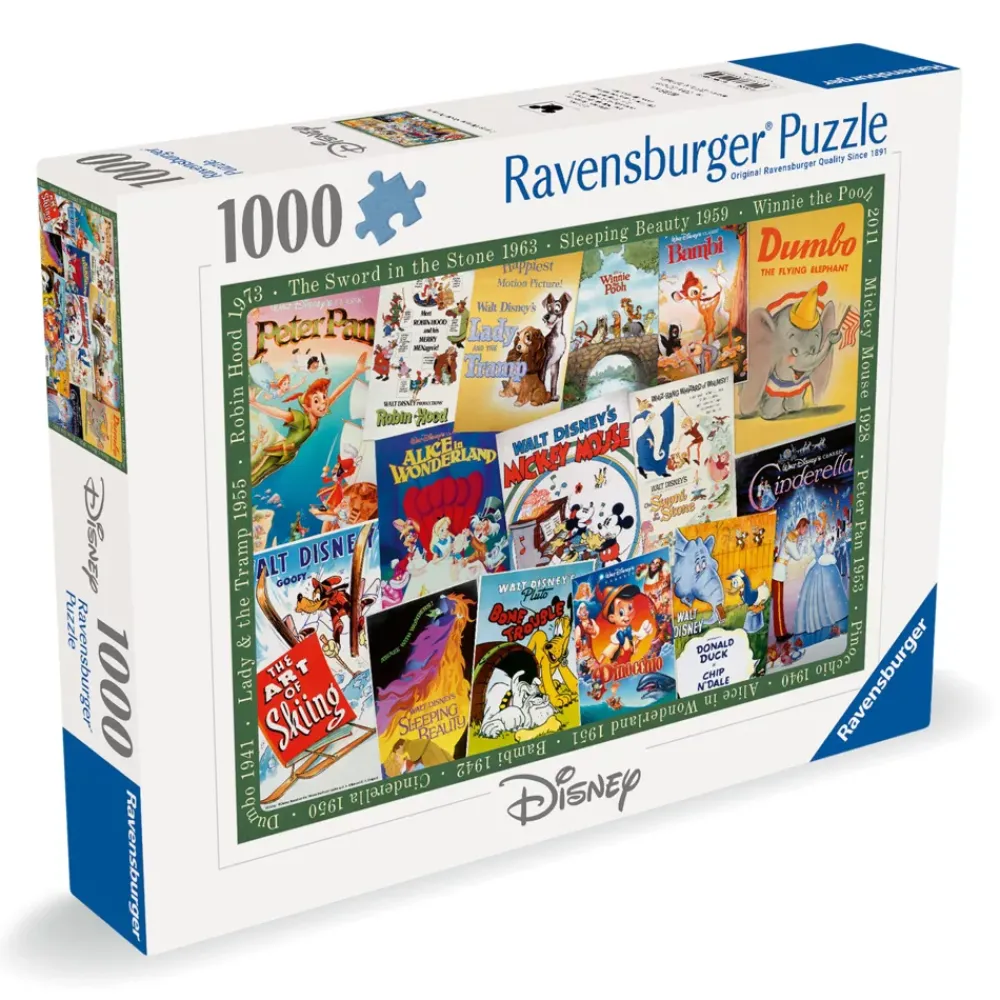 Ces affiches de films nostalgiques feront remonter de tendres souvenirs devant les films classiques de Disney, de 1928 avec Mickey jusqu’aux années 1930. Les puzzles Ravensburger 1 000 pièces sont fabriqués avec des matériaux de haute qualité et mesurent 70 x 50 cm une fois terminés. Des puzzles parfaits pour les adultes comme pour les enfants de 12 ans et plus. Avec plus d’un milliard de puzzles vendus, Ravensburger est une des marques de puzzles les plus vendues dans le monde. Les puzzles Ravensburger sont les cadeaux parfaits pour toute la famille ! Les puzzles sont fabriqués à base d’un carton exclusif très épais associé à un papier fin structuré en lin pour créer un puzzle sans reflet et proposer la meilleure expérience possible. Découvrez tous les avantages qu’offrent les puzzles : des moments agréables en famille aux bienfaits à long terme pour la santé, en passant par l’activation des neurones au quotidien ! C’est un excellent cadeau d’anniversaire ou de Noël.