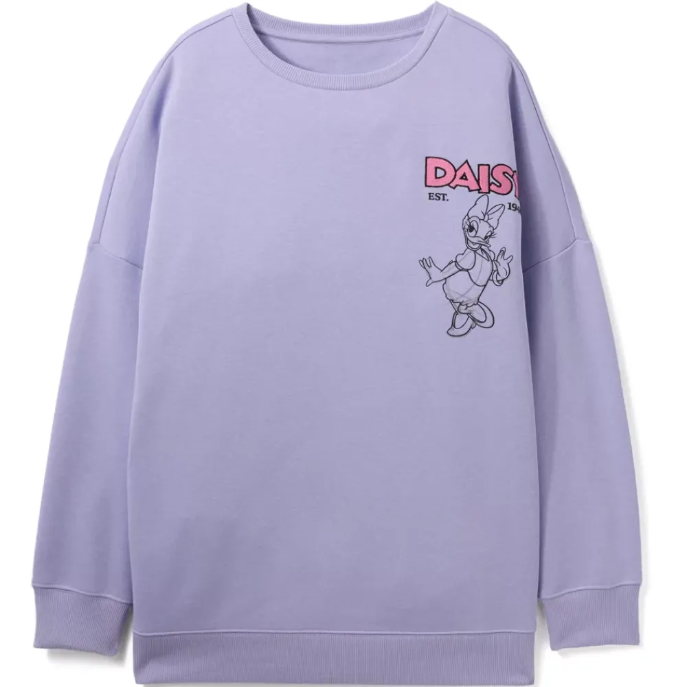 Célébrez les 85 ans de Daisy Duck avec style grâce à ce charmant sweat-shirt ! Décoré d’un motif personnage coloré et de dessins façon croquis amusants, ce sweat-shirt lavande pâle apporte une touche Disney à tous vos looks. Avec ses épaules tombantes et sa coupe décontractée, il est parfait pour les journées cocooning et les moments magiques.