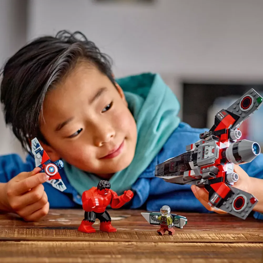 - Toute l’action des super-héros avec un avion de chasse – LEGO Marvel Captain America vs Hulk rouge est un jet à construire qui entraîne les garçons et les filles dès 7 ans dans des aventures de haut vol