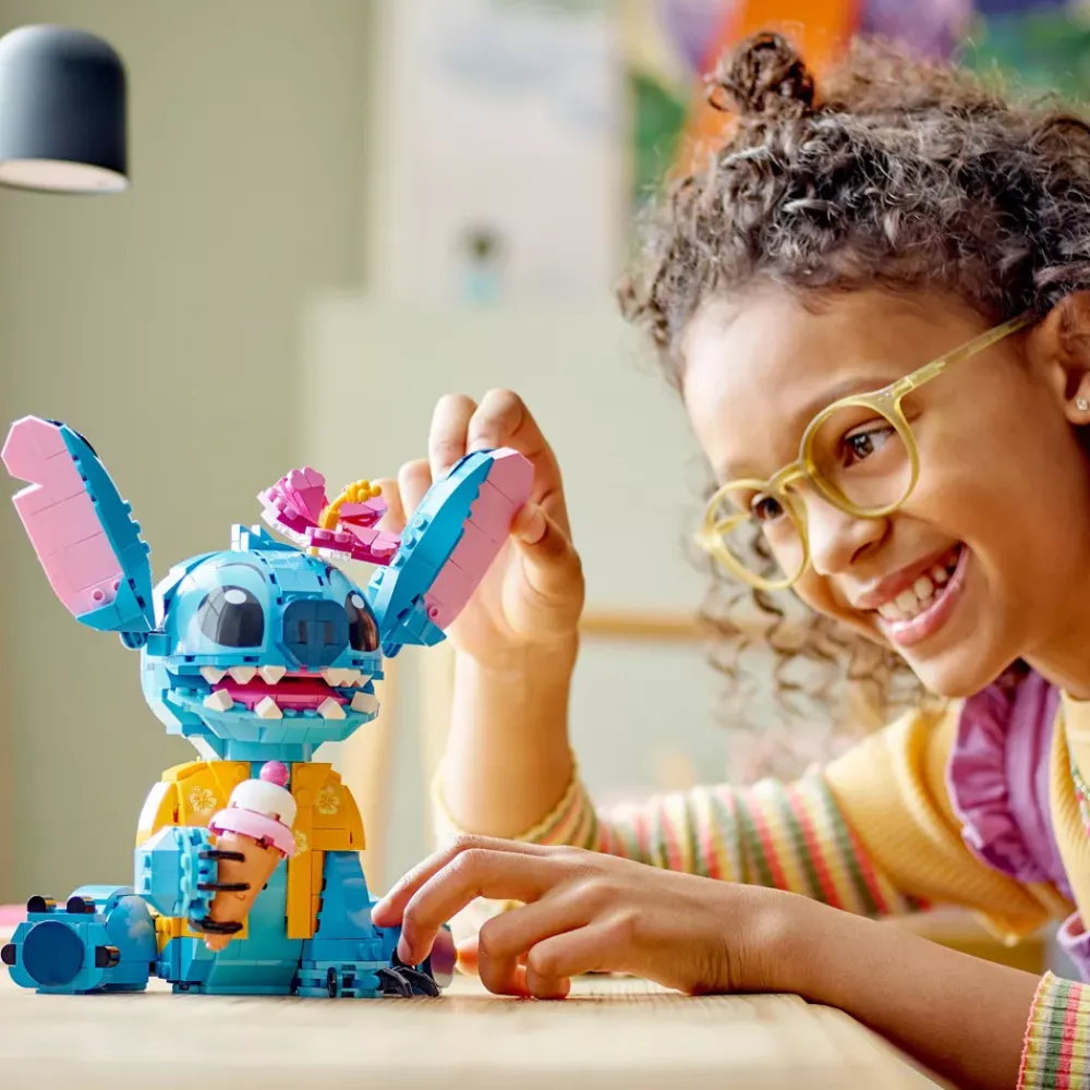 - Personnage de Stitch de Disney – Ce set de construction créatif LEGO inclut le modèle d’un personnage de Lilo et Stitch à exposer, un cornet de glace à construire et une fleur qui peut être utilisée pour décorer le personnage