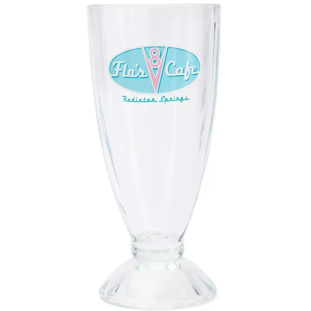 Ajoutez une touche du charme de Cars Land à vos milkshakes, sodas ou boissons préférées avec ce verre au design épuré décoré du logo du Café V8 de Flo !