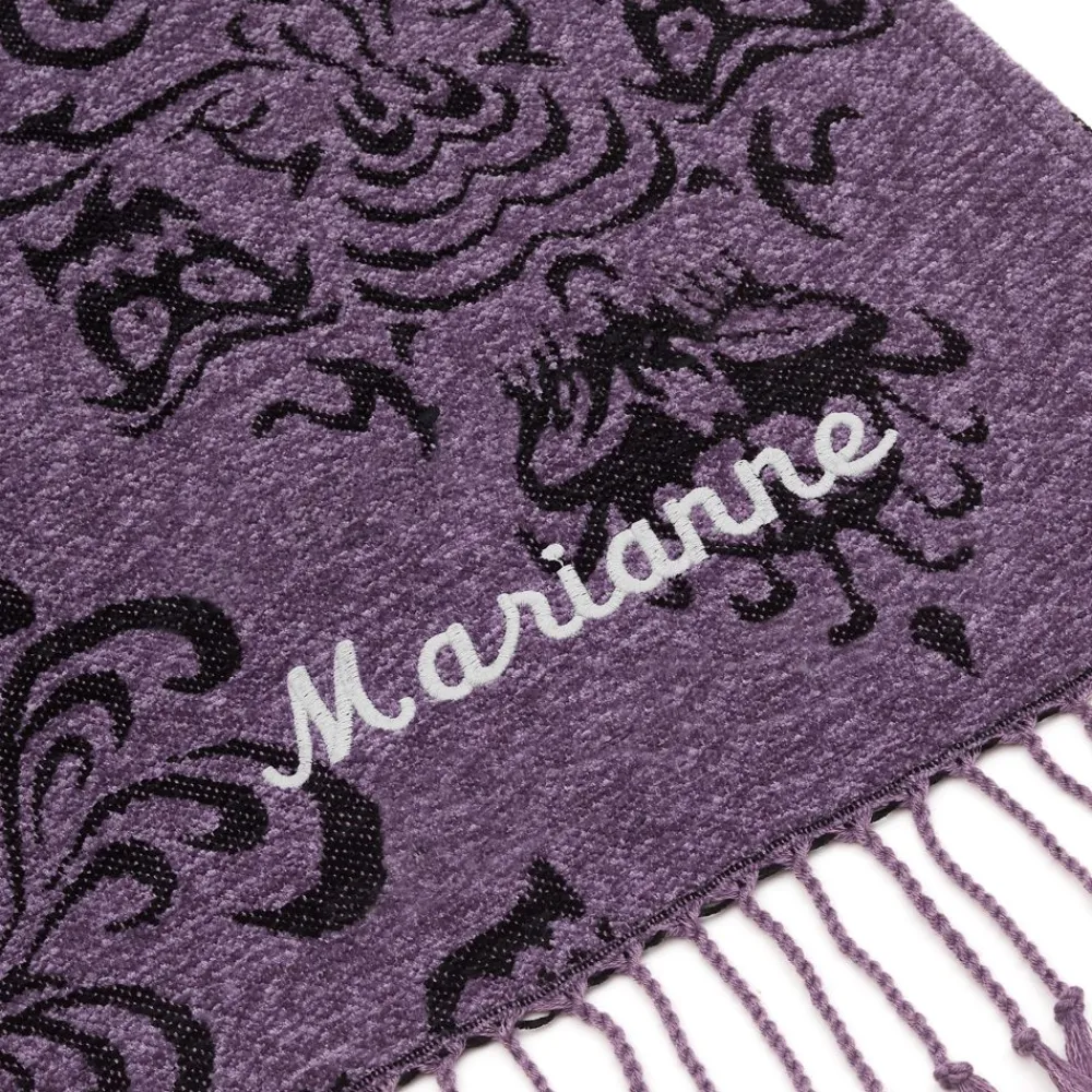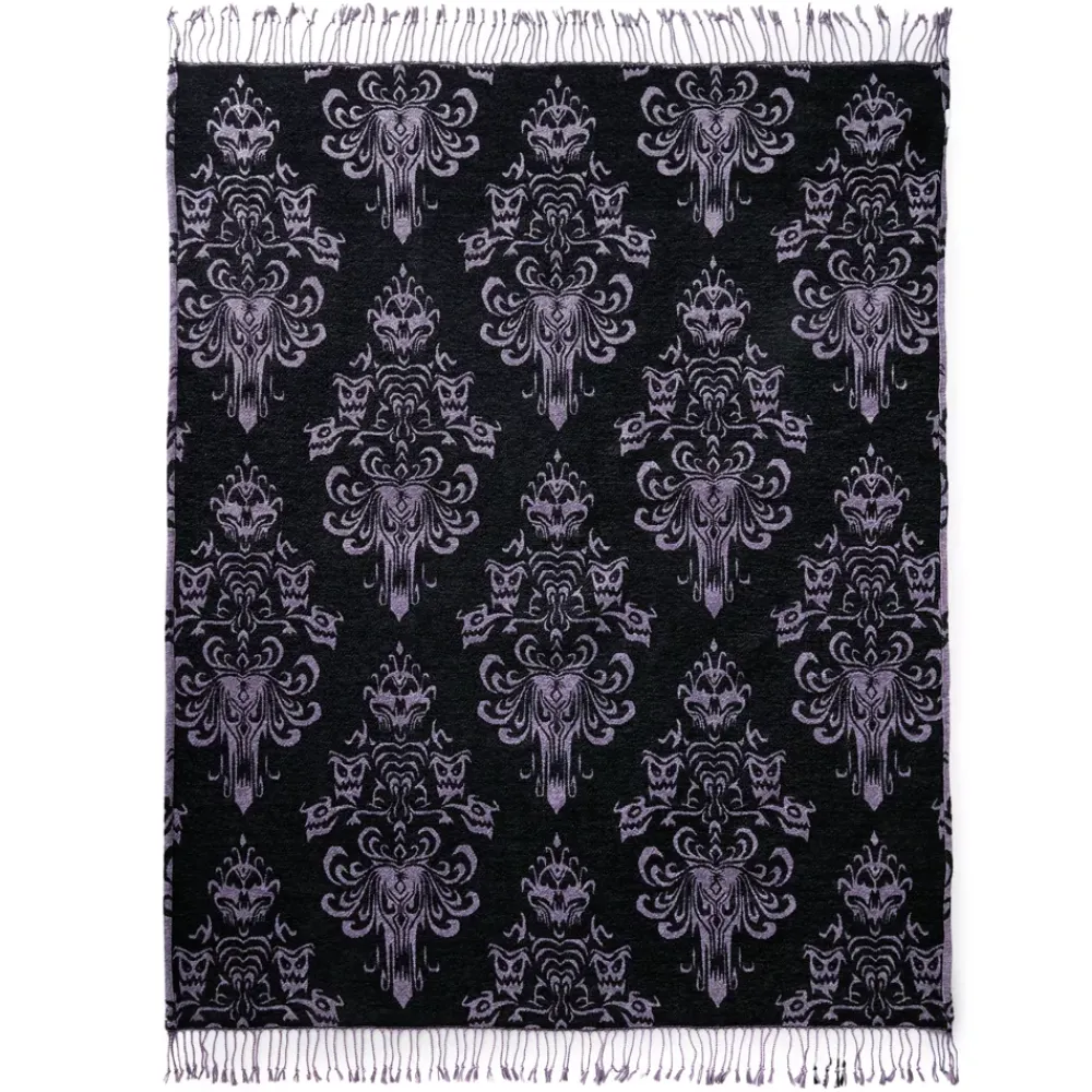Laissez-vous transporter vers la célèbre attraction fantôme à chaque moment de détente ! Ce jeté tissé tout doux, qui présente un motif inspiré du papier peint caractéristique de The Haunted Mansion, est fabriqué en chenille pour que vous frissonniez de peur, mais jamais de froid.