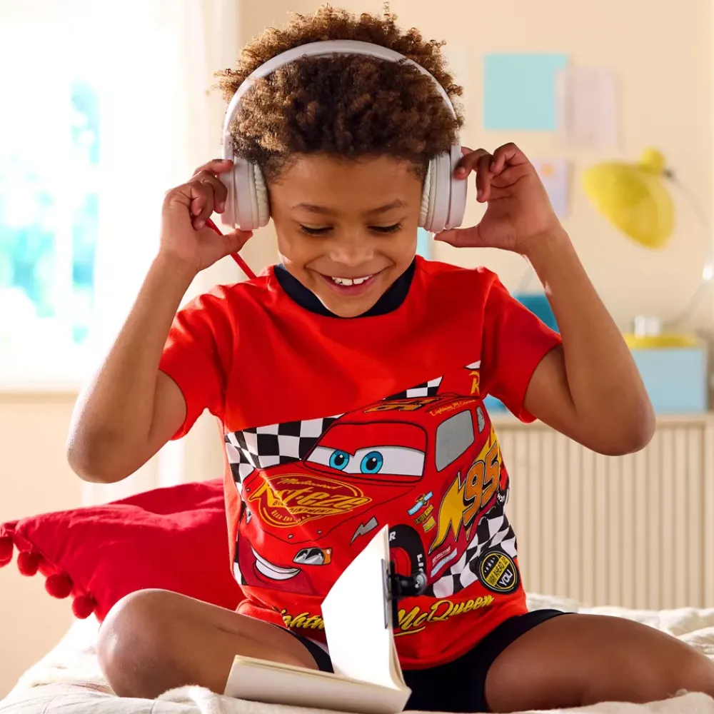 Préparez vos petits champions pour des aventures nocturnes avec ce pyjama Flash McQueen. Avec cet ensemble court confortable aux motifs colorés inspirés des courses et du drapeau à damier, les jeunes pilotes s’endormiront en un temps record.