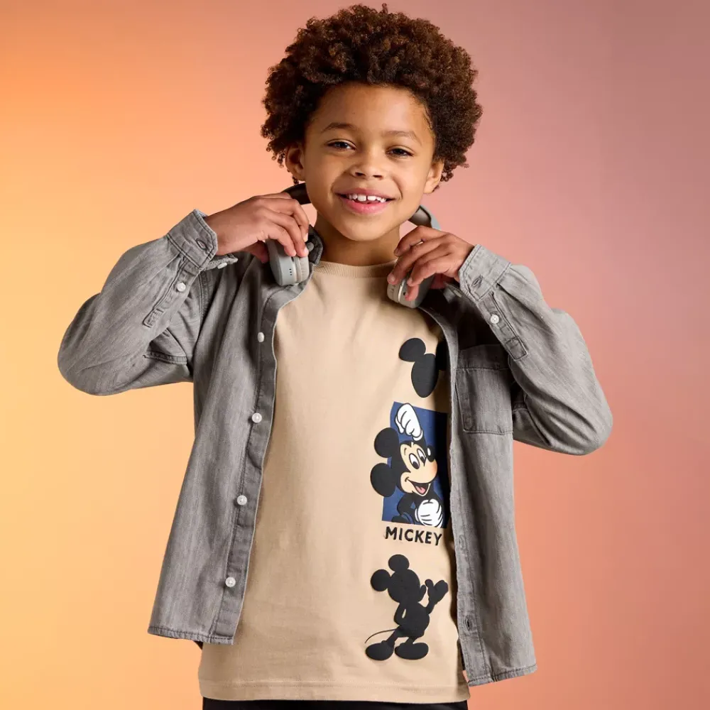 Ajoutez un peu de magie Disney à la garde-robe de votre bout de chou avec ce t-shirt Mickey au style rétro présentant des motifs de la souris !
