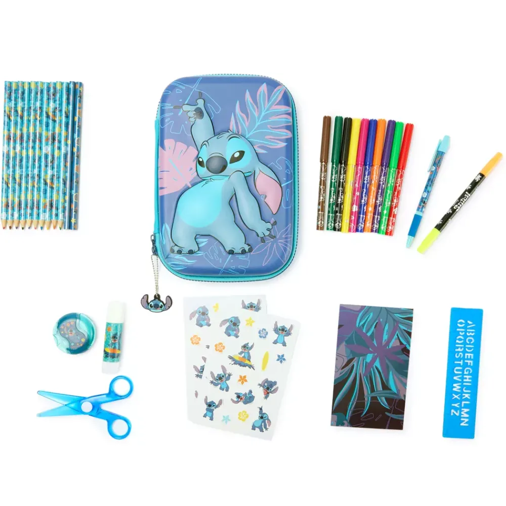 Stitch va mettre la créativité des petits sens dessus dessous ! L’extraterrestre enjoué est représenté sur la couverture souple et rembourrée de cet ensemble plein de caractère. L’étui contient un vaste éventail de fournitures pour la classe comme des crayons de couleur, des marqueurs, des autocollants et bien d’autres choses encore.