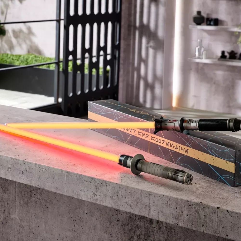 Cette édition spéciale présente les sabres laser de deux des personnages principaux de la série Star Wars: Ahsoka sur Disney+. Reproductions fidèles des gardes de Shin Hati et de Baylan Skoll, elles incluent des effets sonores et s’illuminent d’une couleur rouge-orange lorsque les deux lames de sabre laser incluses y sont attachées. Les deux gardes et les deux lames sont fournies dans une boîte de présentation doublée et décorée du symbole d’Ahsoka sur le devant.