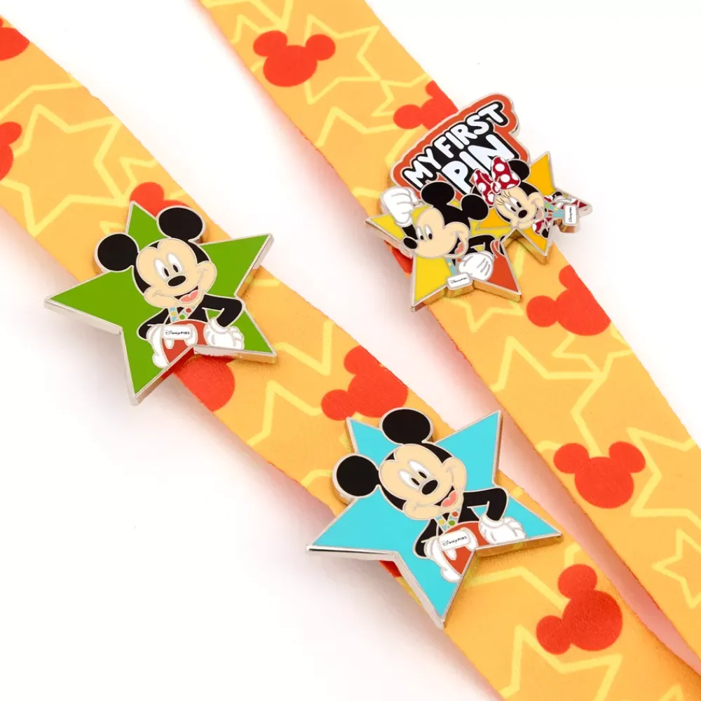 Célébrez les joies de l’échange de pin’s ! Cet ensemble, parfait pour commencer la collection, contient un tour de cou coloré avec imprimé étoilé et têtes de Mickey ainsi que des pin’s en émail cloisonné représentant Mickey et Minnie dans des cadres en forme d’étoiles, sans oublier l’inscription « My First Pin ». Utilisez le tour de cou pour montrer votre collection et faire des échanges !
