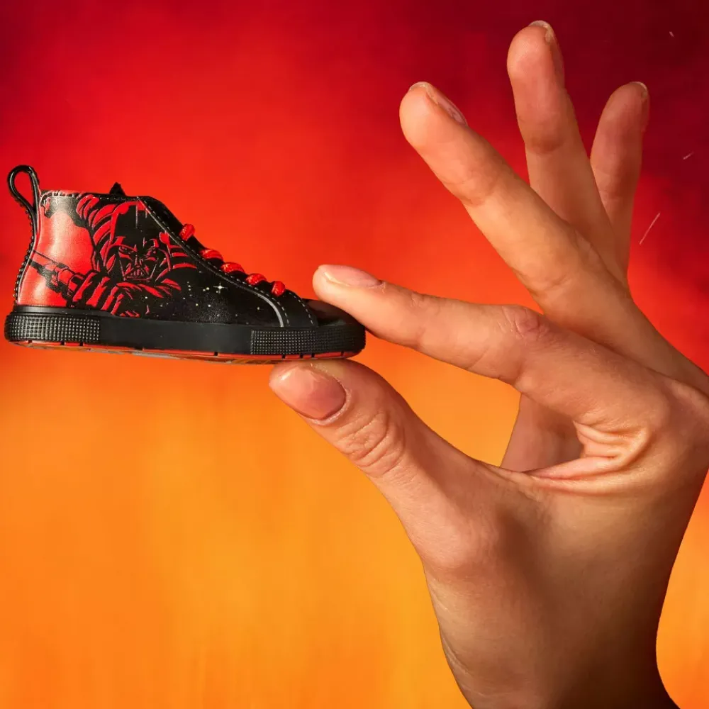 Au croisement du côté obscur et de la lumière, cette figurine collector en vinyle Disney Lacers en édition limitée célèbre le 20e anniversaire de Star Wars : La Revanche des Sith. Cette chaussure miniature illustre l’attraction de la Force grâce à un motif spectaculaire représentant Dark Vador en rouge et Anakin Skywalker en bleu sur chaque côté de cette chaussure miniature. Cette pièce collector spéciale est tout simplement irrésistible.