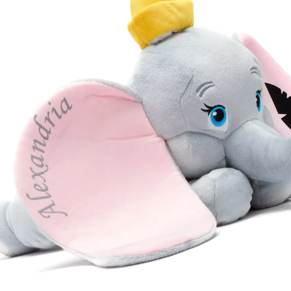 Mais qui va là, plume magique à la trompe ? C’est Dumbo l’éléphant volant ! Cette peluche représente le vaillant petit éléphant qui s’envole, avec son col et son chapeau de clown, ses oreilles en relief et des détails brodés.