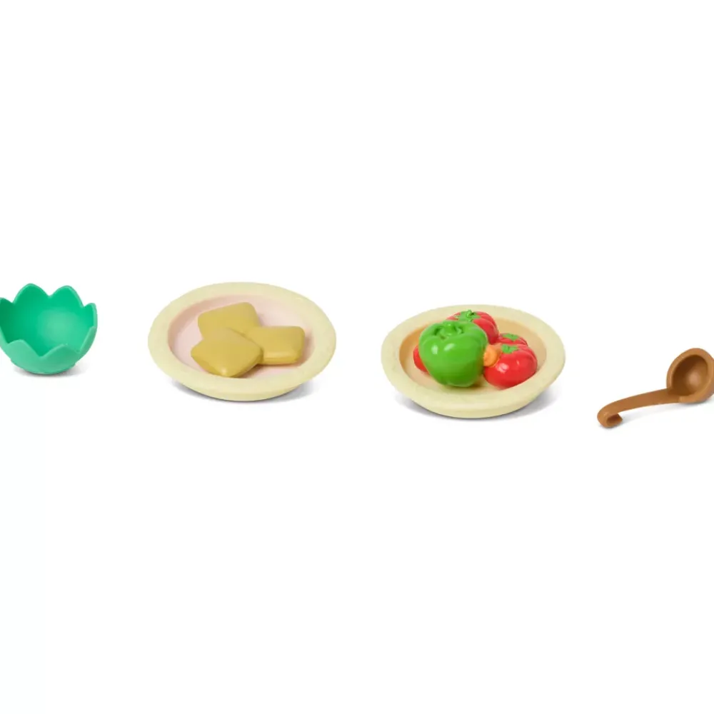 - Accessoires : bol, casserole, sauce chili, pot de miel, louche et 2 assiettes de nourriture