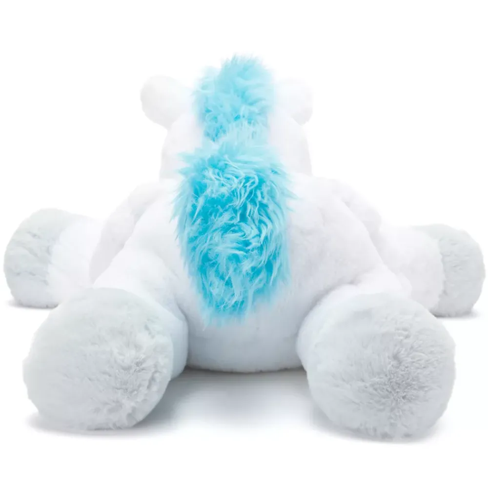 Prenez votre envol avec Pégase ! Avec cette peluche plus grande que nature du cheval ailé d’Hercule, et son pelage blanc comme un nuage, sa crinière bleu ciel et ses ailes souples, les câlins ne seront jamais très loin. Que ce soit pour vous blottir contre lui ou pour rêver d’aventures olympiennes, Pégase apporte une touche mythique à votre quotidien !