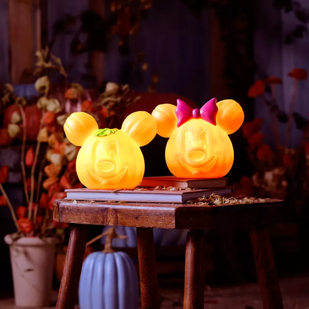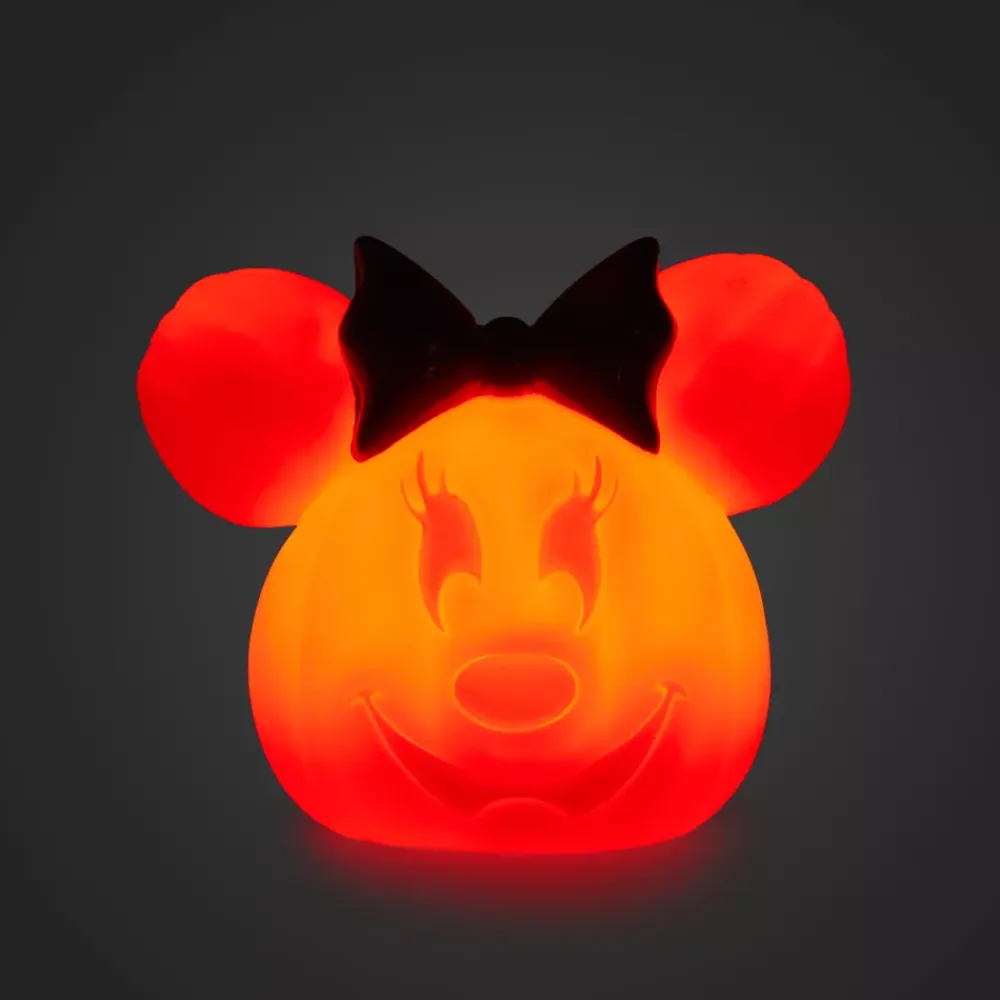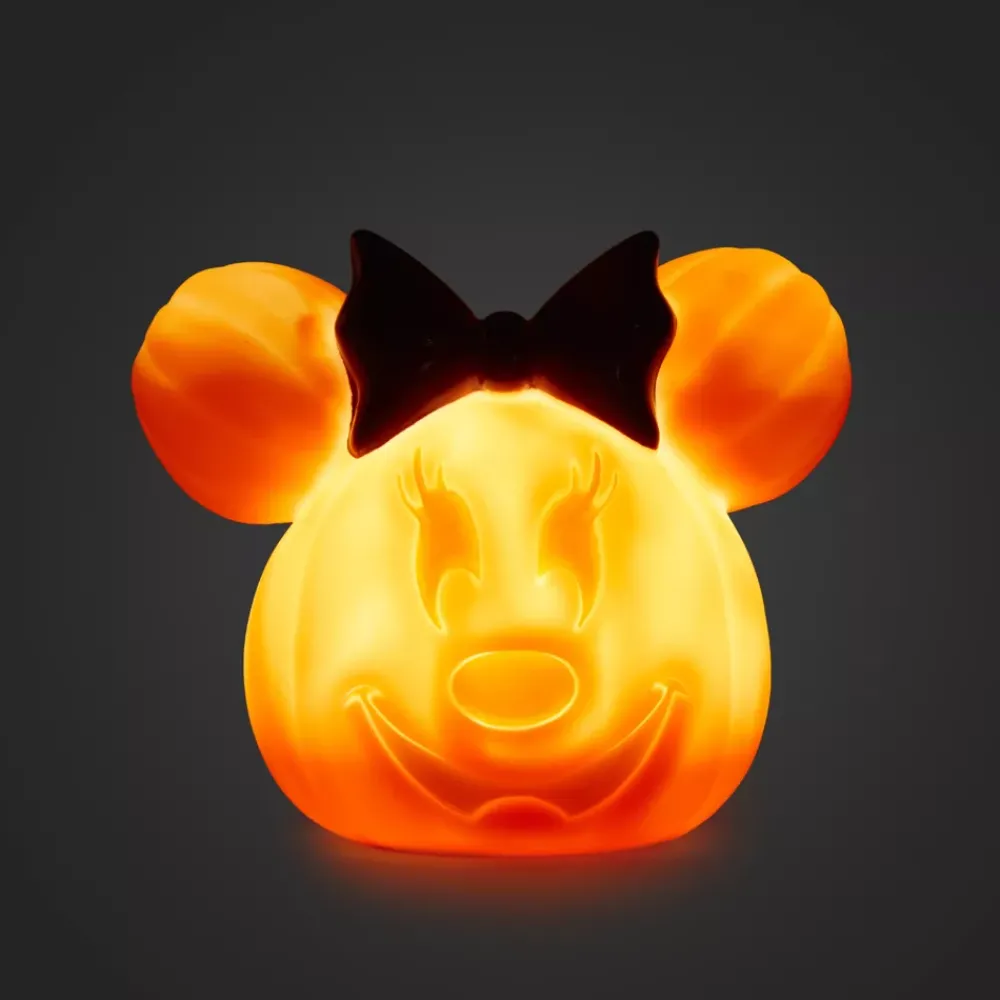 Minnie s’est déjà préparée pour célébrer Halloween avec ses amis ! La citrouille moulée s’illumine d’une lumière vacillante, afin d’accueillir vos visiteurs avec un sourire inquiétant.
