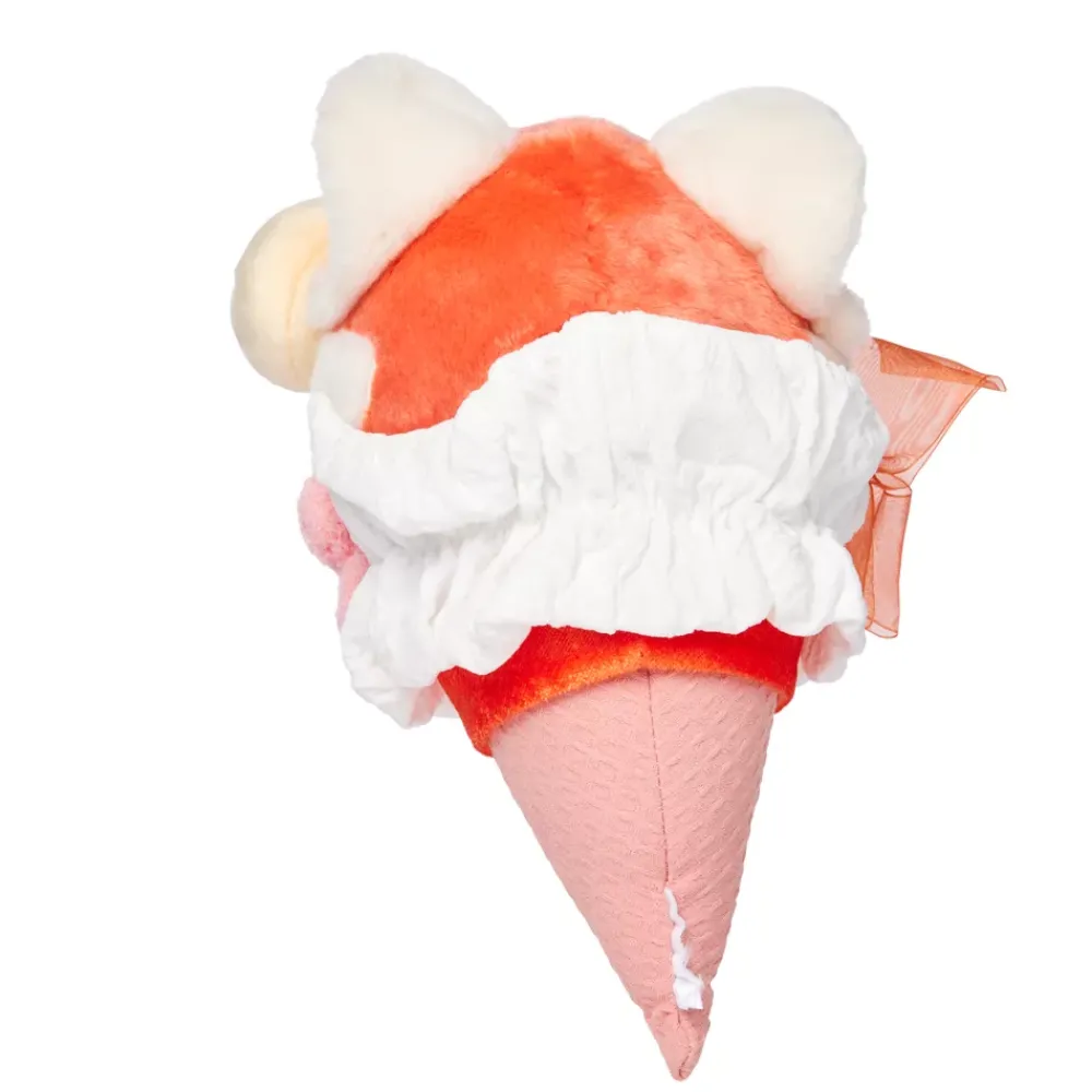 - Peluche rembourrée Mei Lee toute douce avec ruban et fleur à l’intérieur du cône