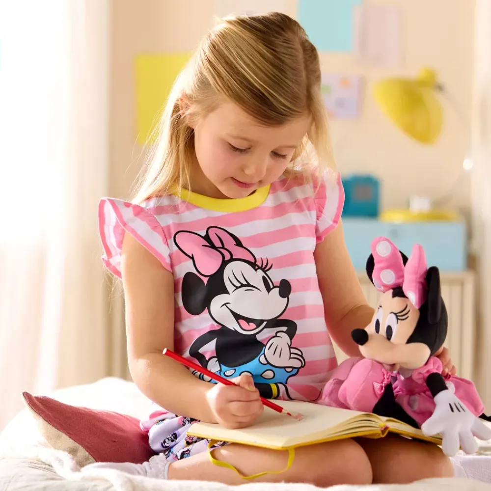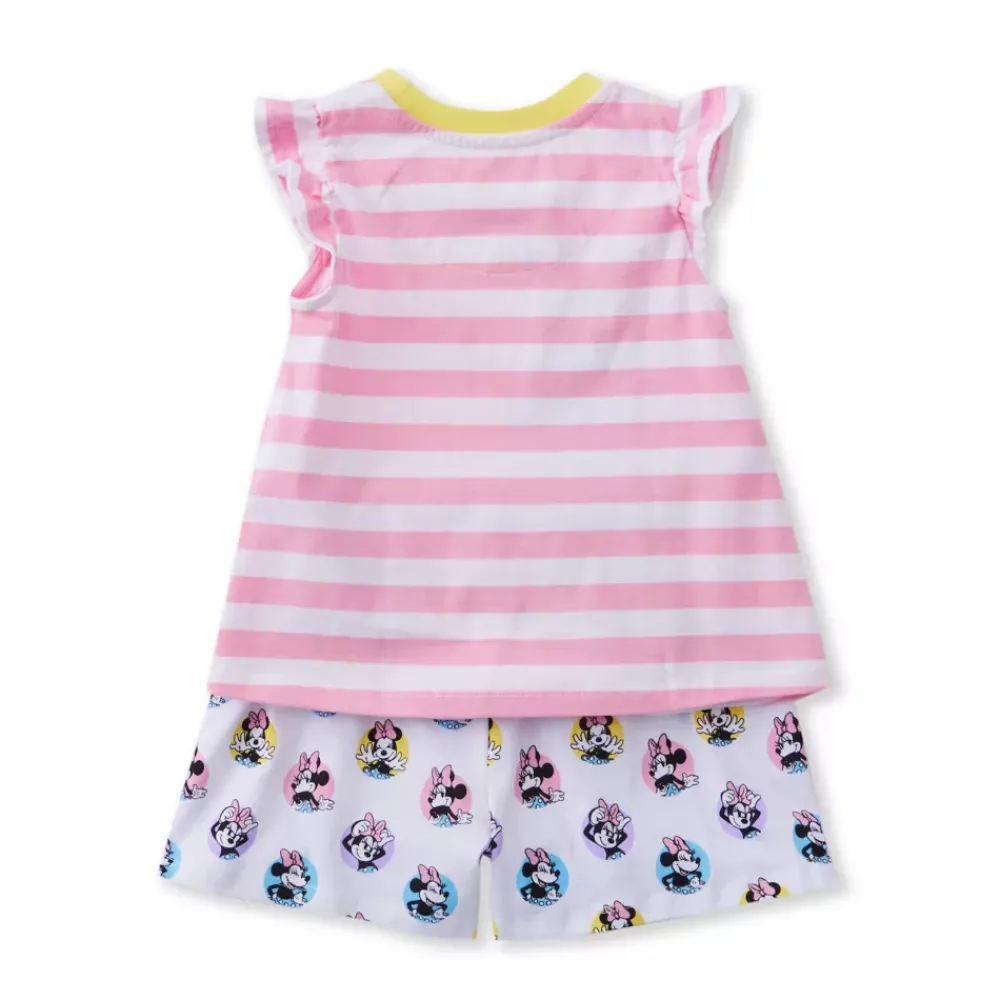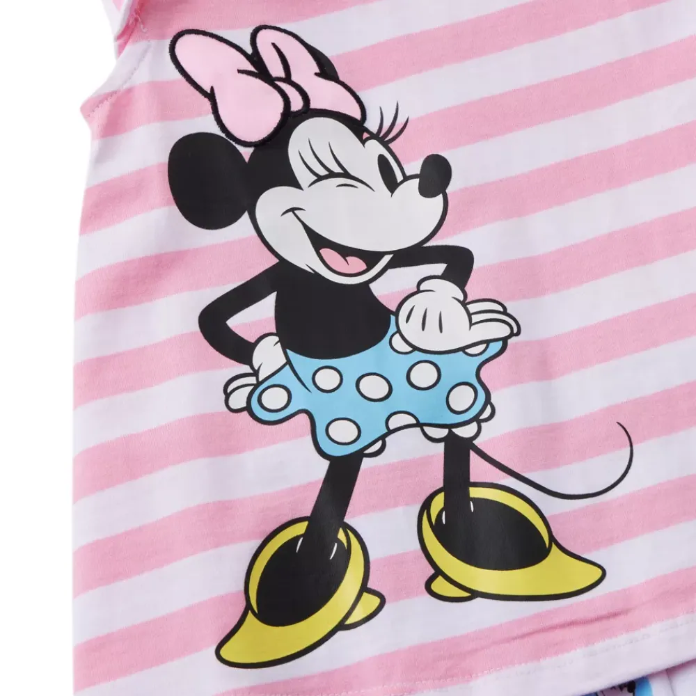 C’est l’heure de se coucher et l’élégance est au rendez-vous avec cet adorable pyjama Minnie composé d’un haut rayé mettant en scène Minnie dans sa tenue à pois emblématique, et d’un short assorti avec un imprimé intégral représentant son célèbre nœud.