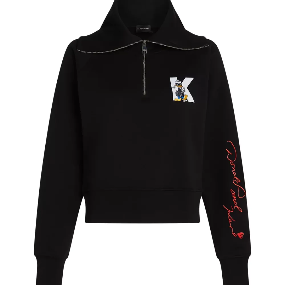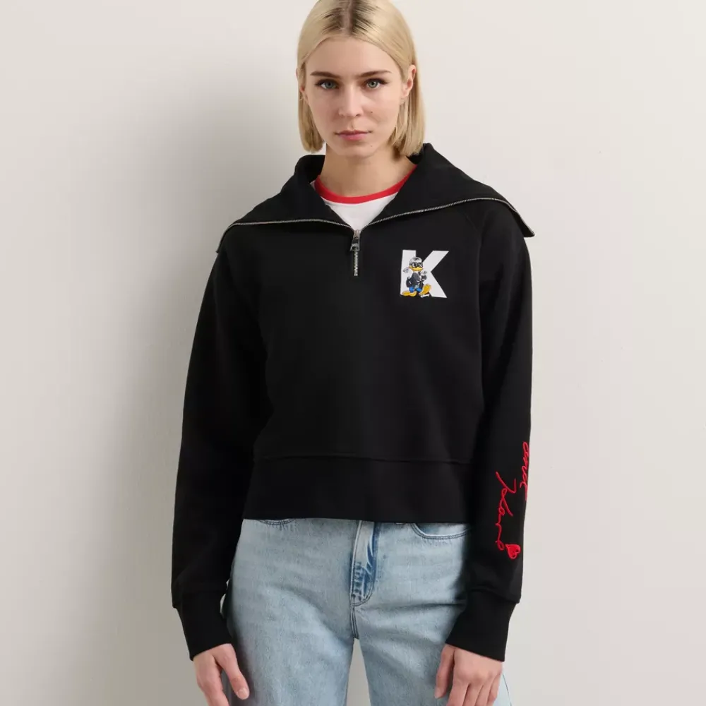 Célébrant la créativité et le style, ce sweat-shirt unique est décoré d’un croquis d’archive réalisé par Karl Lagerfeld et représentant Donald Duck de Disney, l’un de ses personnages préférés. Ce produit issu d’une collection unique est doté d’un col large et d’une demi-fermeture zippée, tandis que des détails légèrement côtelés assurent une coupe confortable.