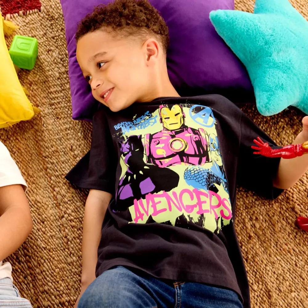 Donnez-lui des supers-pouvoirs avec ce t-shirt Avengers ! Ce modèle présente un motif coloré à l’effigie des plus grands héros de Marvel.