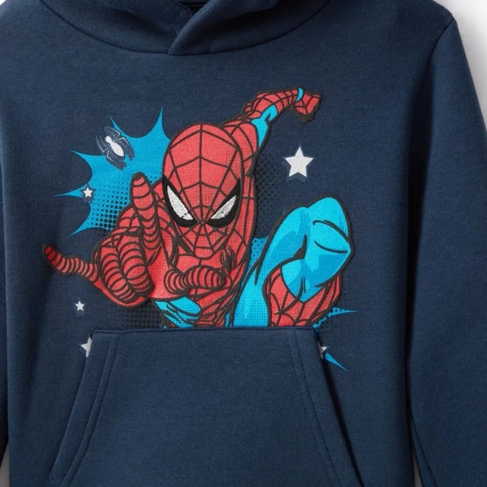 Spider-Man, l’homme araignée qui escalade les murs, est au coeur de l’action tout au long de l’année grâce à ce superbe sweat à capuche décoré d’un motif classique des deux côtés et d’une inscription le long de la manche. Et pan !
