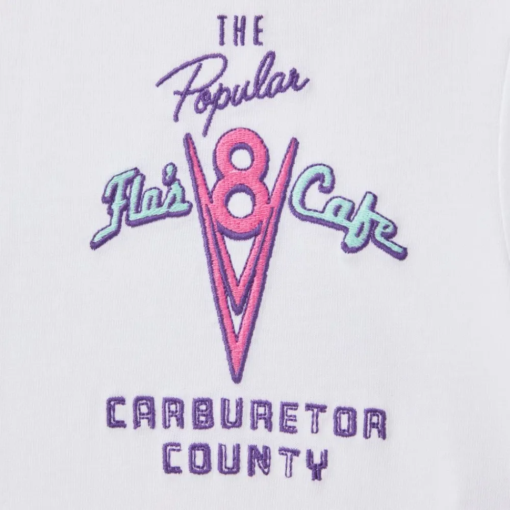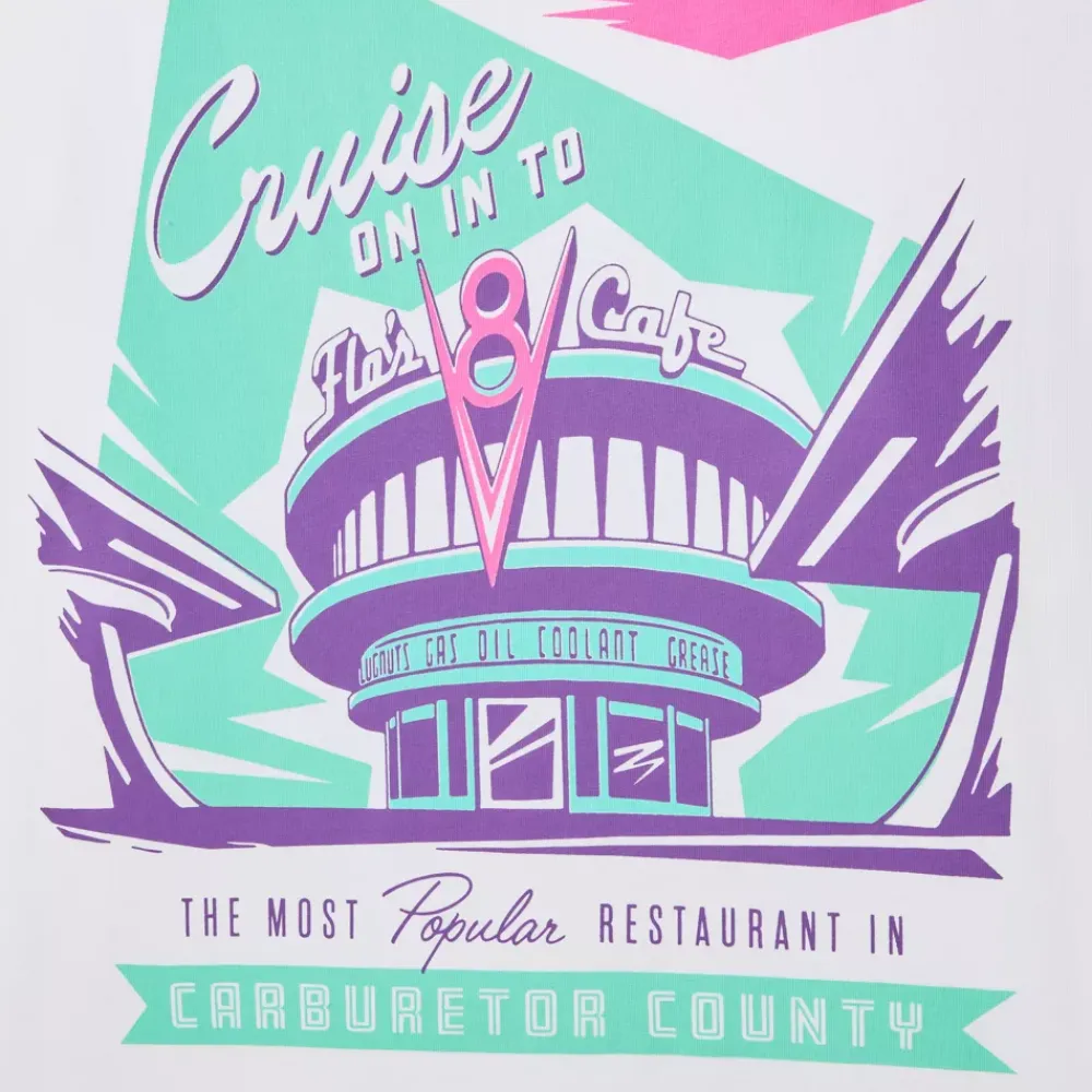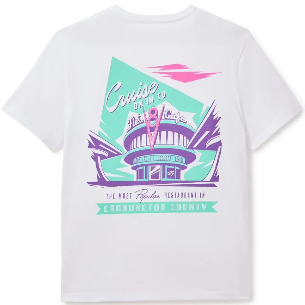 Prenez la route en affichant les couleurs de Radiator Springs ! Ce t-shirt confortable en coton présente un motif impressionnant inspiré du café emblématique de Flo dans le dos et un logo discret sur le devant. Idéal pour les fans de la Route 66 !