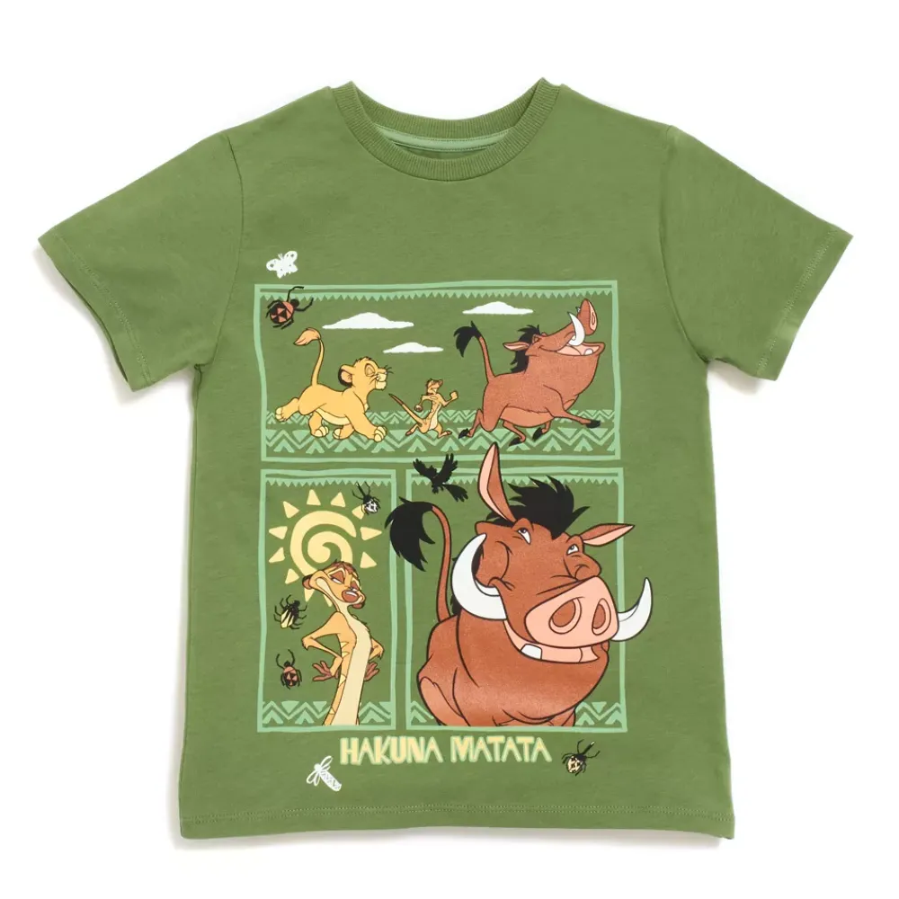 Votre lionceau va rugir de bonheur en portant ce t-shirt inspiré du Roi Lion ! Il présente des motifs à l’effigie de Simba, Pumbaa et Timon qui vivent leur vie sans aucun souci ! Hakuna Matata !