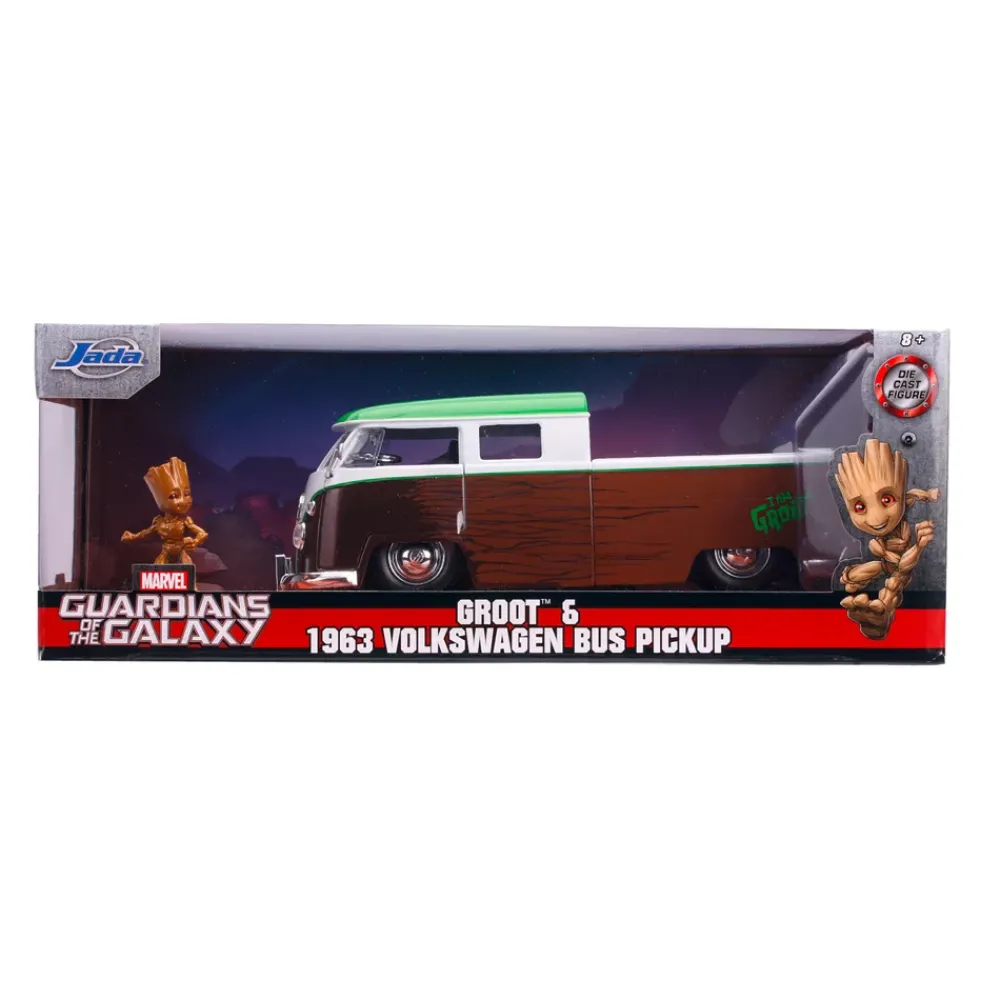 Les Gardiens de la Galaxie sont de redoutables mercenaires de l’espace, et Groot en est le pilier moral ! Ce pick-up VW reflète avec brio la personnalité de Groot, qui ne rêve de rien d’autre que d’emmener les Gardiens à l’aventure tout en écoutant de supers chansons. Ce modèle à l’échelle 1/24 dispose de parties qui s’ouvrent. Placez la mini figurine en métal de Groot (fournie) au volant !