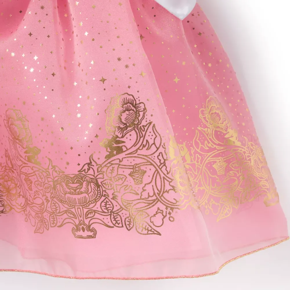 Faites vivre un rêve éveillé à votre petite merveille en lui offrant cette magnifique robe Aurore. Elle éblouira les fans de contes de fées avec ses sequins dorés, sa jupe à volants avec filigrane forêt, ses basques en organza transparent, son corsage froncé, son col plissé orné d’un noeud en satin ainsi que sa rose étincelante et sa broche en forme de couronne. Vive le rose !