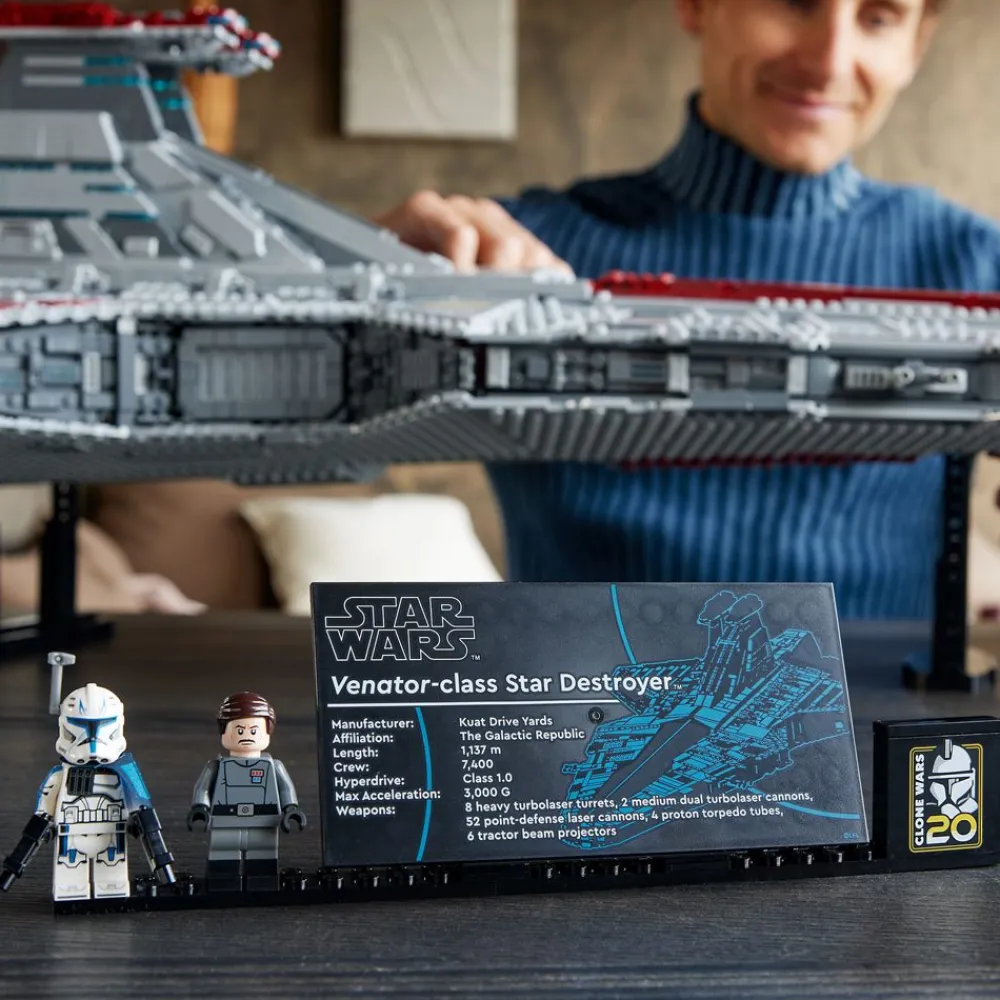 - Conçu pour être exposé – Ce modèle à construire s’accompagne d’un support intégré orné d’une plaque descriptive et d’une brique commémorant le 20e anniversaire de Star Wars : Clone Wars. Il peut accueillir 2 minifigurines LEGO