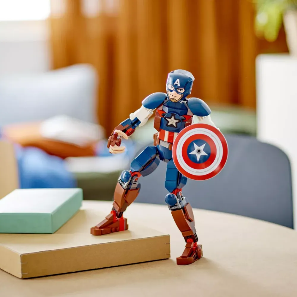 - Ils pourront construire leur propre figurine Captain America et s’amuser avec pour recréer les scènes les plus palpitantes des films. Captain America peut libérer ses mains pour combattre les méchants en fixant le bouclier sur son dos.