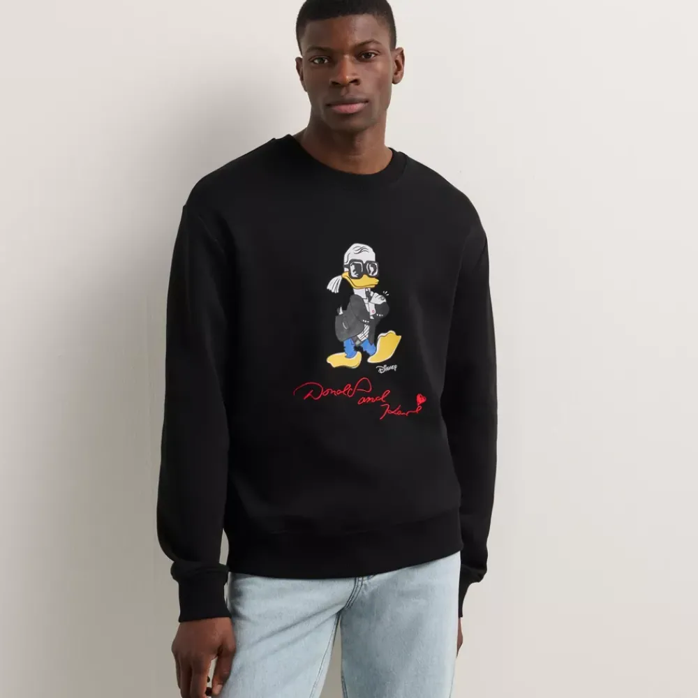 - Motif amusant à l’effigie de Donald Duck sur le devant avec broderie contrastante en hommage à la collaboration