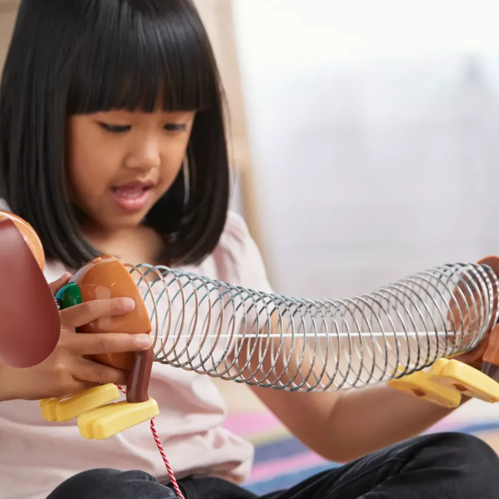 Notre figurine Zigzag articulée entraînera à coup sûr des heures d’amusement ! Avec ses oreilles douces et son corps en ressort qui s’allonge quand on le traîne, Zigzag peut prononcer 15 répliques du film.