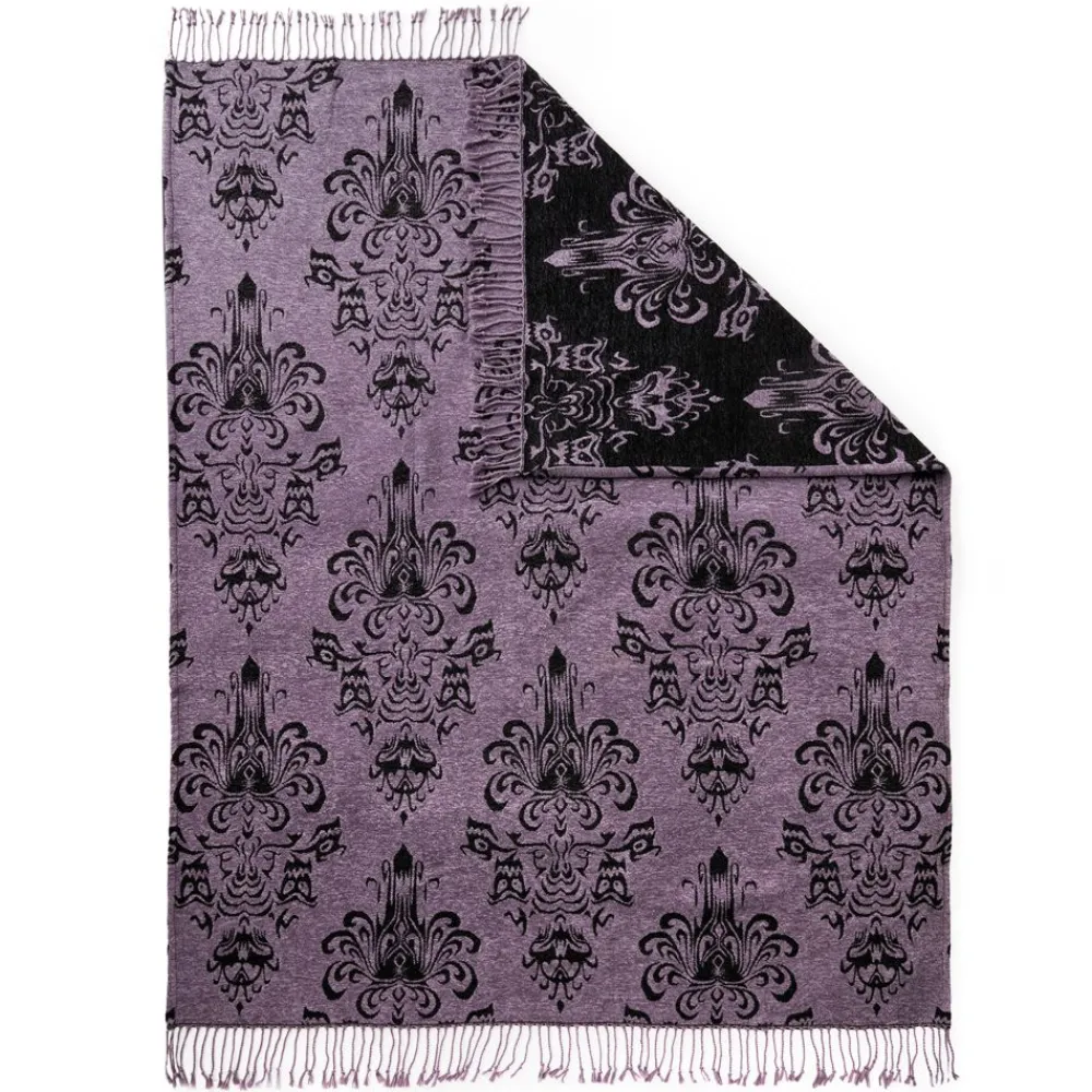 Laissez-vous transporter vers la célèbre attraction fantôme à chaque moment de détente ! Ce jeté tissé tout doux, qui présente un motif inspiré du papier peint caractéristique de The Haunted Mansion, est fabriqué en chenille pour que vous frissonniez de peur, mais jamais de froid.