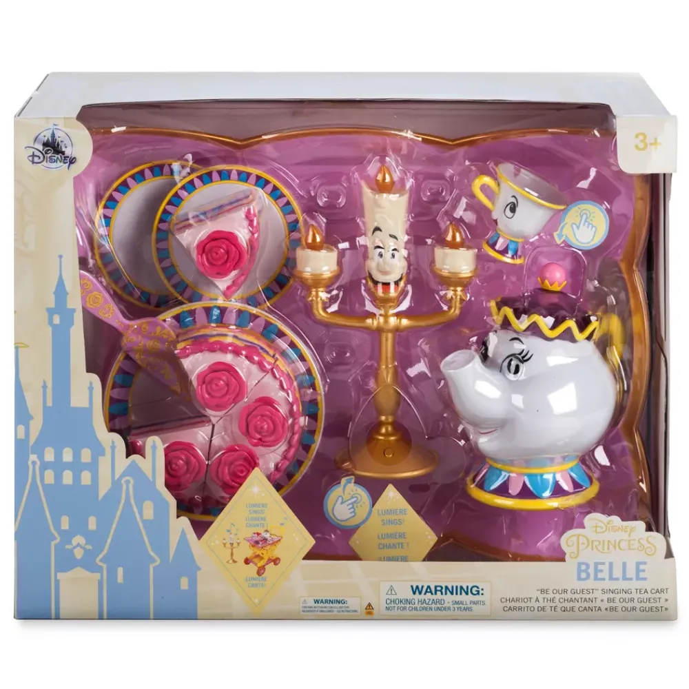 Tout comme Belle, préparez le thé pour vos invités ! Ce chariot inspiré de La Belle et la Bête comprend Lumière chantant « Be Our Guest » tandis que Madame Samovar et Zip préparent le thé, à toute heure ! Et une part de gâteau, une !