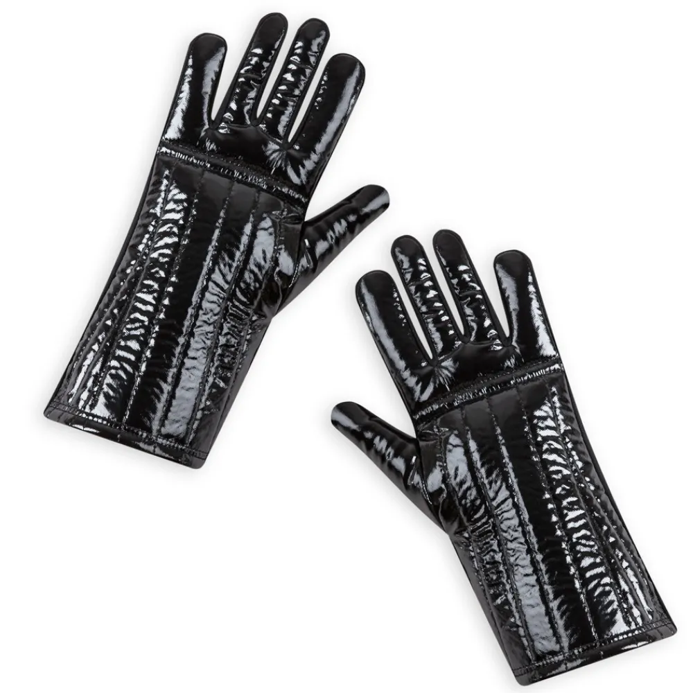 - Gants avec tissu noir brillant sur le dessus