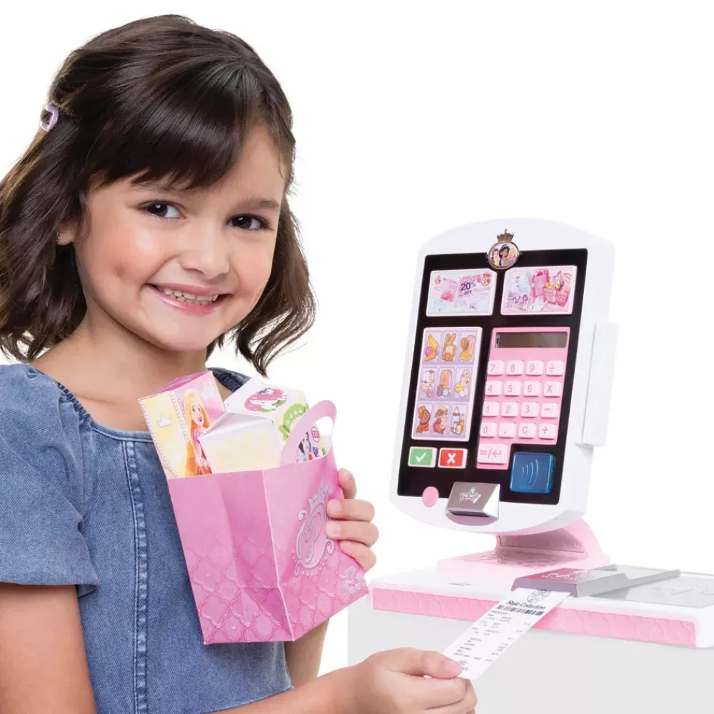 Élégante, unique et tellement amusante, la collection Disney Princess Style associe le jeu à une touche contemporaine inspirée des princesses Disney ! Cette collection de jouets inspirés de la vie réelle est destinée aux jeunes filles modernes qui ont de grands rêves et un style incroyable. Ce sont des fonceuses, des globe-trotteuses, des fashionistas et surtout, des filles qui aiment mener la danse ! Le quotidien devient fun avec la caisse automatique Stylin’ issue de la collection Disney Princess Style ! Entre son design élégant, ses nombreux accessoires de jeu et ses divers effets sonores et phrases, elle rend toute expérience de shopping absolument fabuleuse ! Les enfants pourront régler leurs achats à l’aide d’une vraie calculatrice et glisser leur carte de crédit factice pour la débiter ! Ils pourront ensuite treloer le stylet dans l’eau et signer de leur nom sur le bloc-signature ! Le shopping n’a jamais été aussi chic !