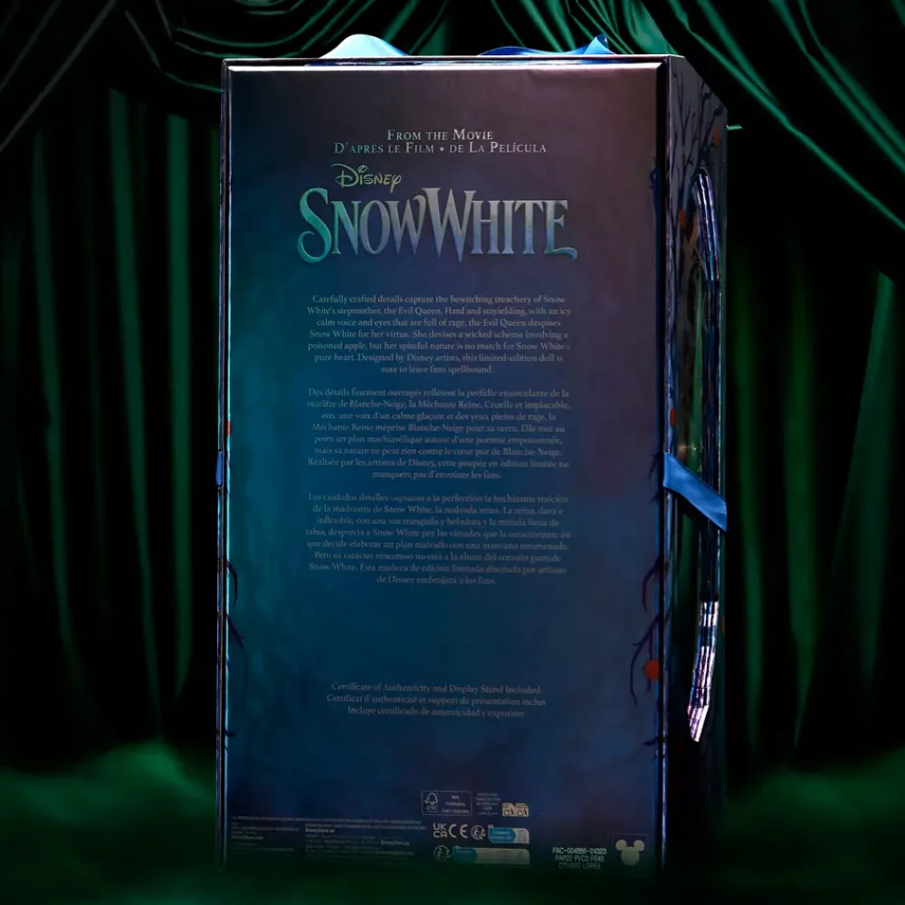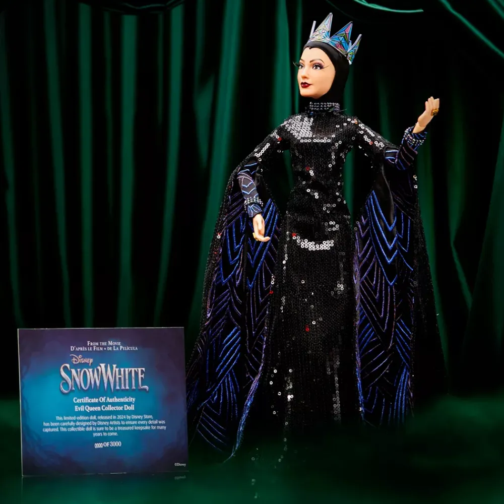 La méchanceté de la Reine ne passe pas inaperçue ! Régnant d’une main de fer et les yeux brûlant de rage, la Reine déteste plus que tout la vertu de Blanche Neige. Conçue par des artistes Disney, cette poupée en édition limitée et très détaillée à l’effigie de la belle-mère de Blanche Neige est décorée de sequins et de broderies, et porte une élégante couronne en verre teinté. Elle fera le bonheur des fans comme des collectionneurs.