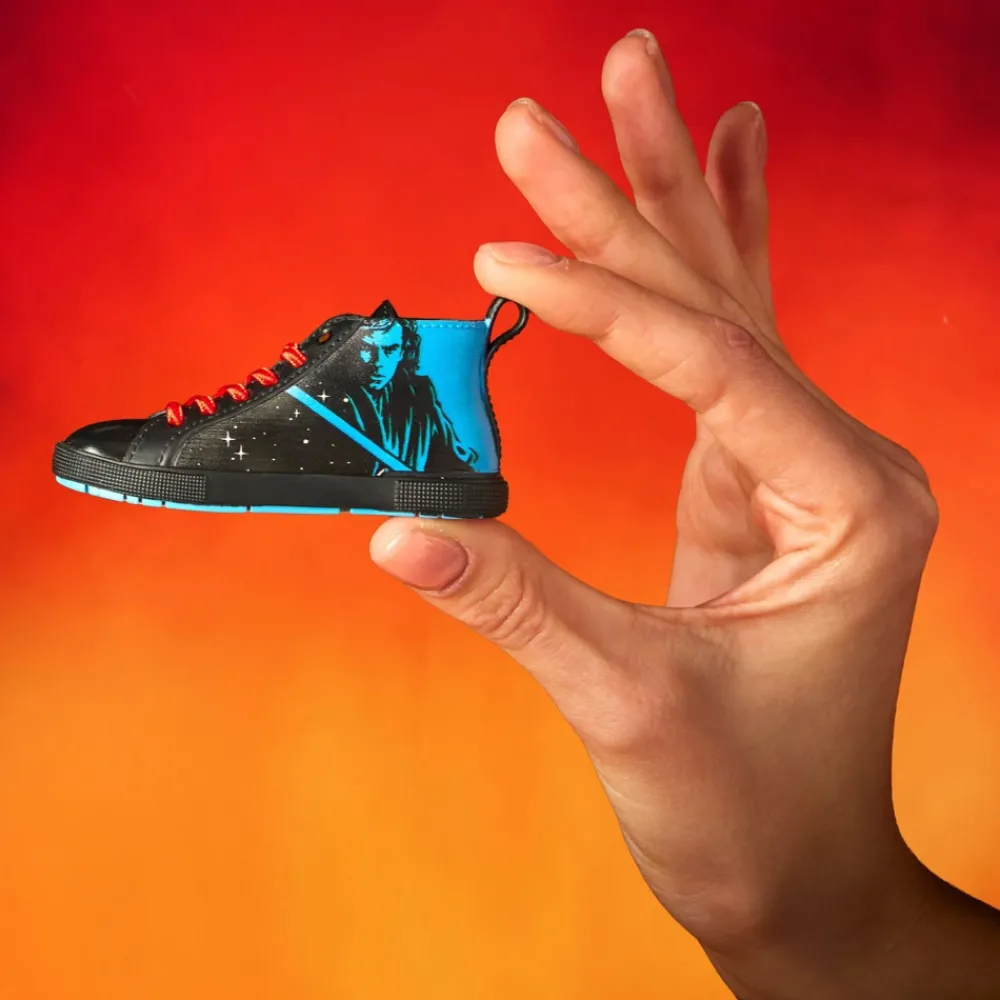Au croisement du côté obscur et de la lumière, cette figurine collector en vinyle Disney Lacers en édition limitée célèbre le 20e anniversaire de Star Wars : La Revanche des Sith. Cette chaussure miniature illustre l’attraction de la Force grâce à un motif spectaculaire représentant Dark Vador en rouge et Anakin Skywalker en bleu sur chaque côté de cette chaussure miniature. Cette pièce collector spéciale est tout simplement irrésistible.