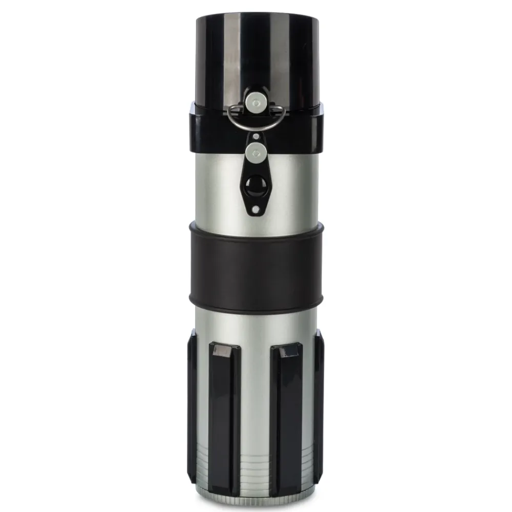Pour combattre la soif, rien de tel qu’une gourde inspirée de la garde du sabre laser de Dark Vador. Ce modèle détaillé présente un bec rouge translucide à fonctionnalité lumineuse, basé sur la couleur du sabre laser du Seigneur Sith. Il émet de vrais sons de sabre laser, et le capuchon se soulève comme la garde de celui de Dark Vador. Il y a même une dragonne amovible pour garder les mains libres.