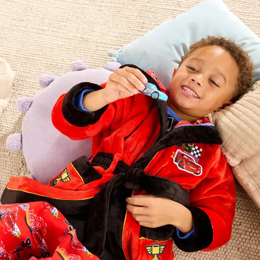 La magie des circuits automobiles règne sur la routine du coucher de votre enfant avec ce peignoir Disney Pixar Cars, décoré d’imprimés colorés à l’effigie de Flash McQueen et du trophée de la Piston Cup directement sur les poches. Que ce soit pour un arrêt au stand après le bain ou un échauffement matinal, ce peignoir est confortable et plein de caractère Fabriqué dans un tissu tout doux et disposant d’une taille à nouer et d’une grande capuche, il gardera votre bout de chou au chaud tout en boostant son imagination. Avec ses superbes détails inspirés de Cars, ce peignoir fera un cadeau à la fois amusant et pratique pour les fans de course, car même les pilotes les plus rapides ont parfois besoin de lever le pied !